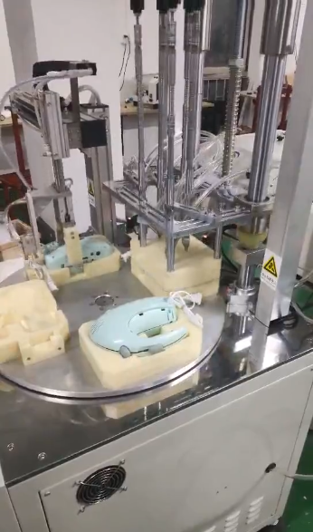 家用插板產品尺寸小,生產要求較高, 這里需要擰螺絲的部位是底部,采用5顆 螺絲緊固,深孔結構。 根據客戶生產要求, 可一次自動擰好5顆螺絲,生產效率較高,...